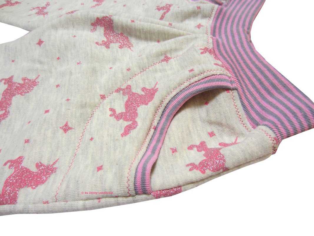 Du kannst entscheiden ob Du unten lieber Bündchen annähst oder einen Saum umnähst. Beides ist ausführlich erklärt.