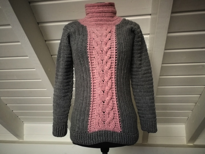 Der Pullover hat einen einfachen Schnitt aber macht trotzdem was her. Du kannst den Pullover so wie ich zweifarbig häkeln oder schlicht in einer Farbe