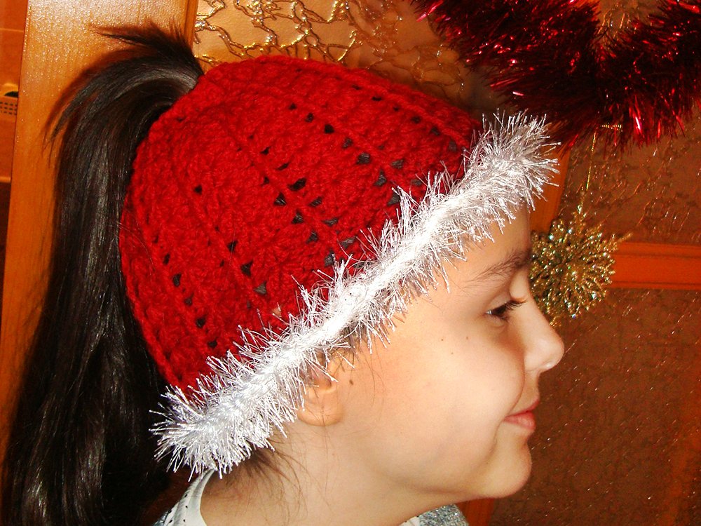Christmas Messy bun hat. Ponytail beanie for girls and women. Running toque pattern. Crochet cap with hair hole