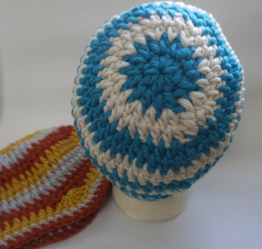 Anbei gibt es eine genaue Größentabelle mit der Ihr die Mütze für alle Größen und in alle Garnstärken häkeln könnt!