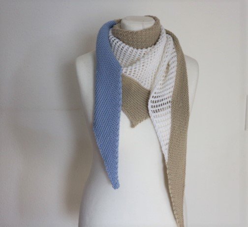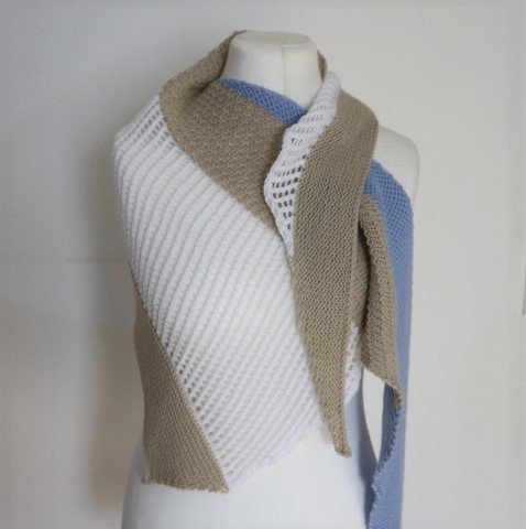 Yarn: 50g Baby Smiles Merino Mix from Schachenmayr in blue (color A), 100g Baby Smiles Merino Mix from Schachenmayr in beige (color B), 50g Baby Smiles Merino Mix from Schachenmayr in white (color C) LL 50g / 120m / 131y 50% wool, 50% polyamide.
