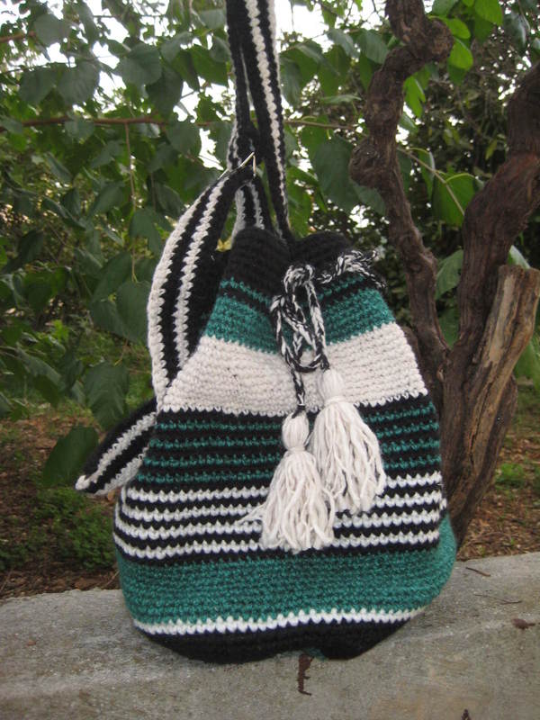 Beautiful crochet striped boho bag made of acrylic yarn. You can choose color of your own!