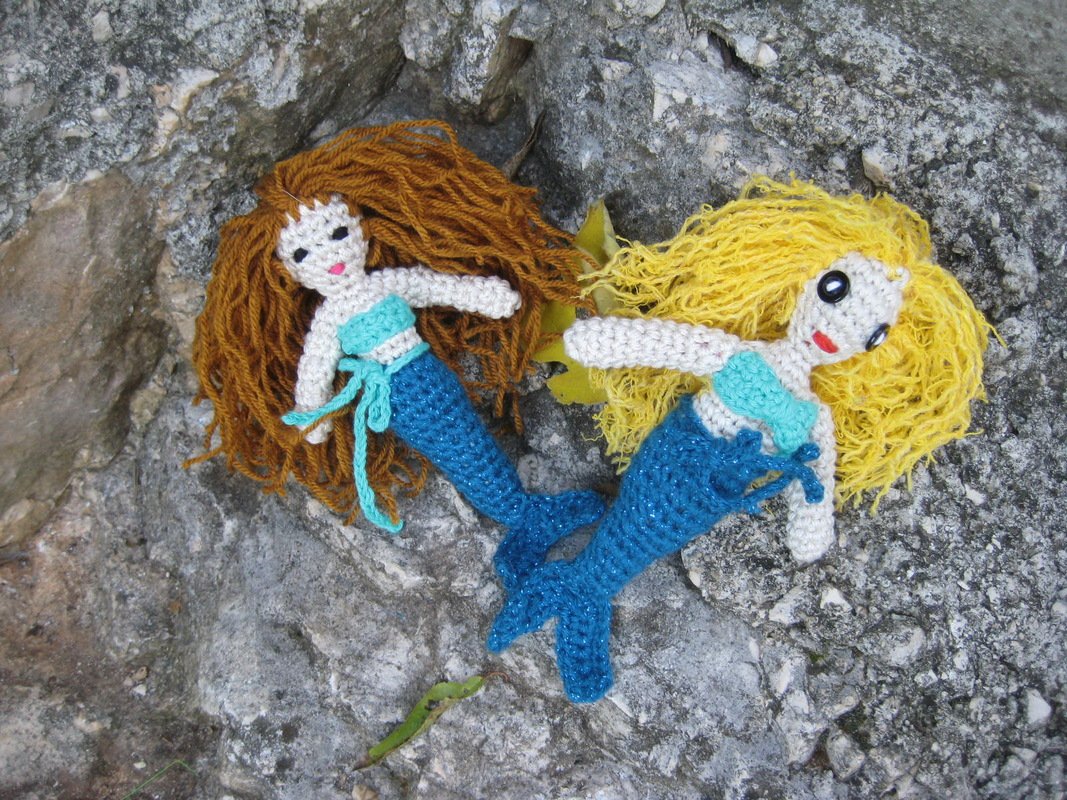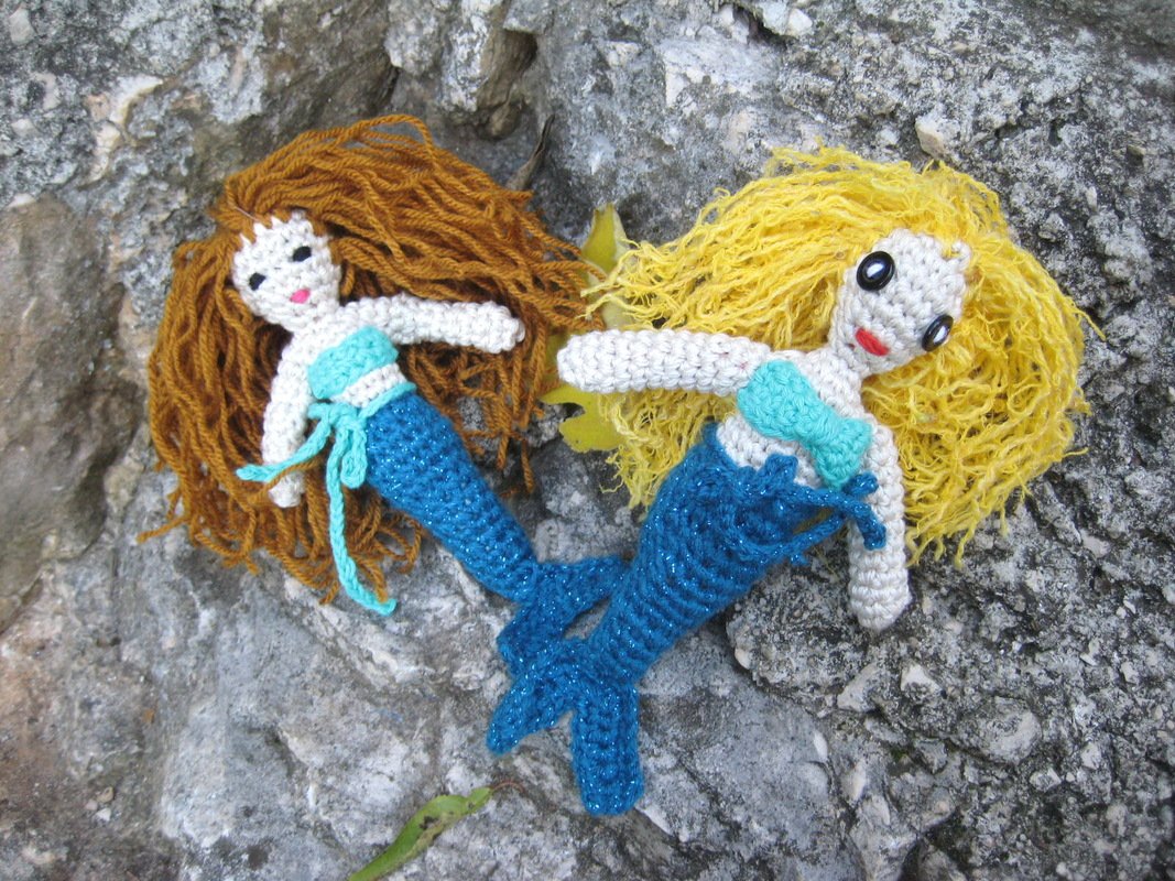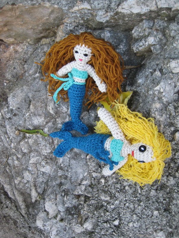 Mermaid crocheted doll is a nice toy and perfect gift for your kids and friends. Made from cotton and acrylic yarn, dimensions are 20 cm (8 inches) height. Pattern is written in English, U.S. terminology.