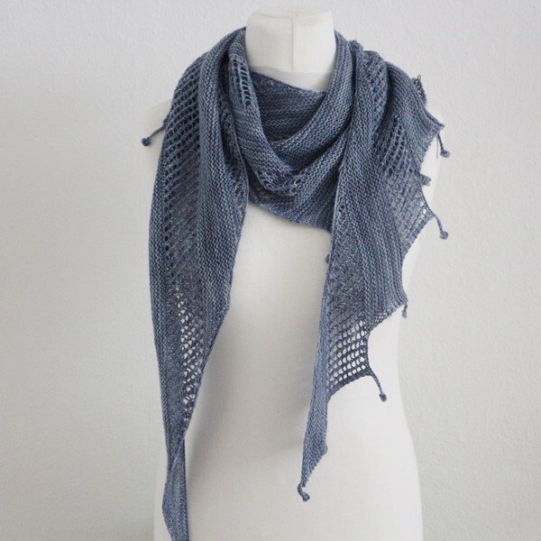 Zibba is a classic asymmetrical dragon tail shawl that grows through simple side increases. The clean design is complemented by playful bobbles along the edge, adding a subtle decorative touch without disturbing the overall simplicity. The pattern is beginner-friendly and fully written out.