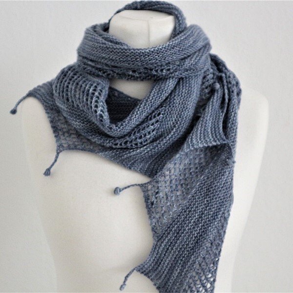 ist sehr ausführlich und verständlich geschrieben und das Stricken macht Spaß. Und das Tuch in blau