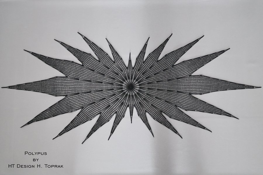 Please work with thin crochet thread, otherwise the doilywill turn out much too large!