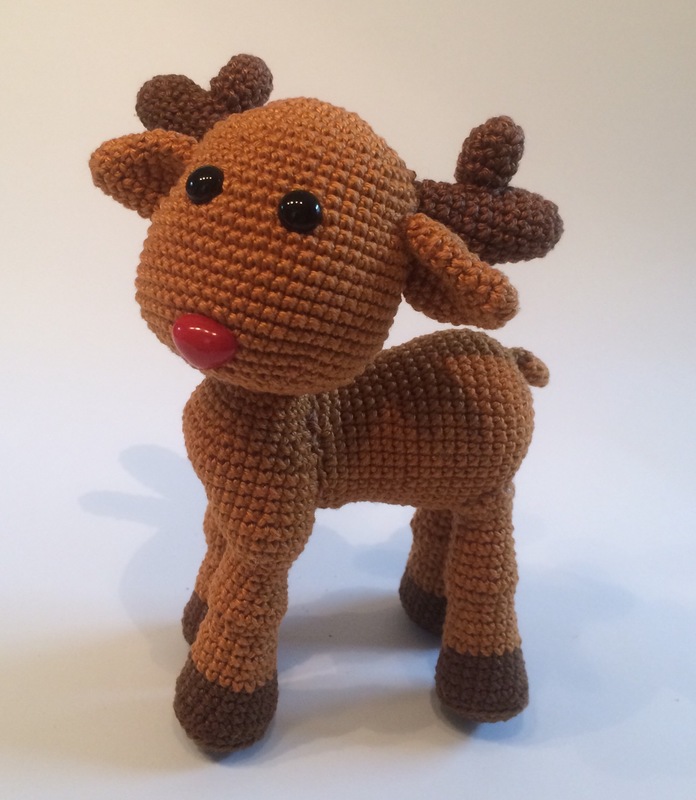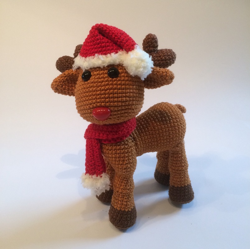 Das Rentier auf den Bildern wurde mit einer Wolle 50g/125m und einer Nadelstärke 2,0 gehäkelt.