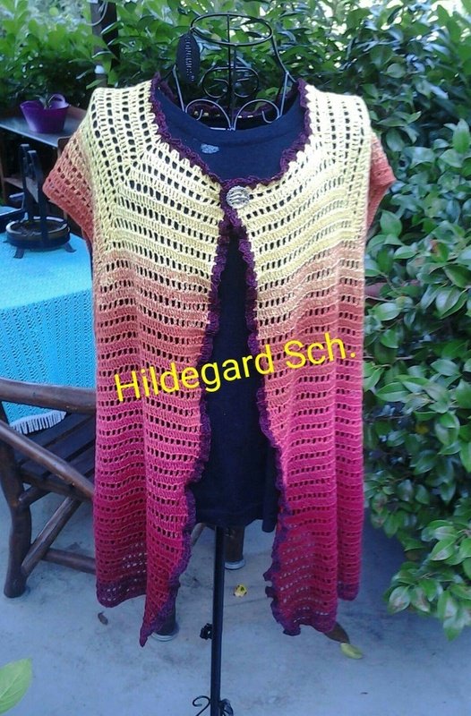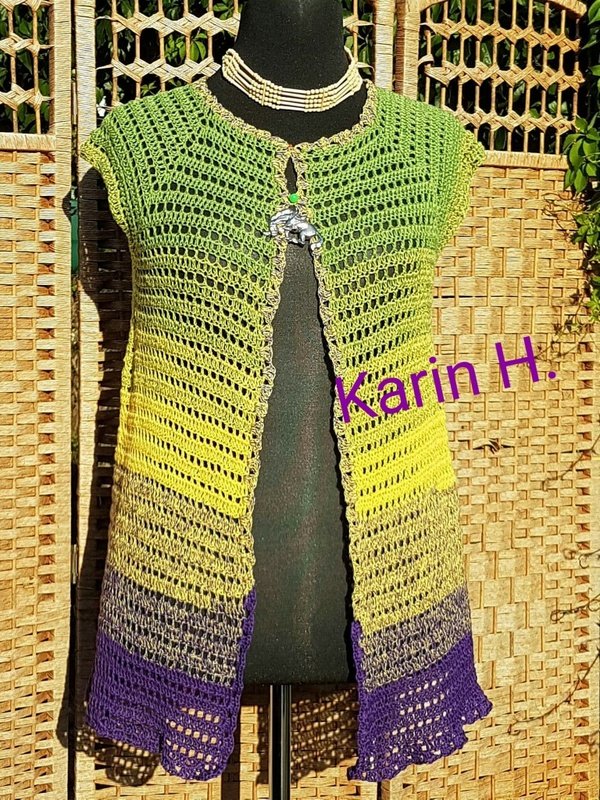 My patterns can be worked in all sizes, they are explained step by step and suitable for creative do-it-yourselfers who want to bring forward own ideas to make their work unique. You can determine the size of your vest by adjusting your work in progress step by step.