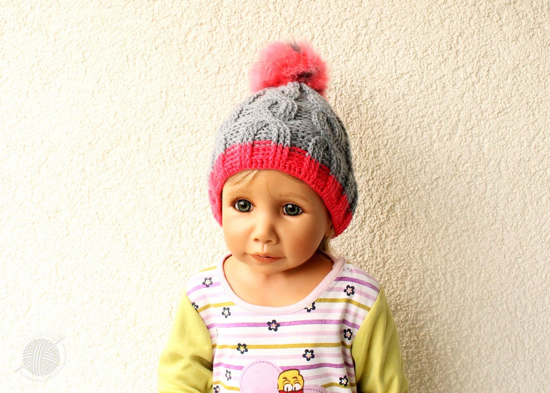 The PDF crochet pattern consists of illustrated tutorial for crocheting a "Ski vacation" hat with the cable braid pattern. This hat can be crocheted for both children and adults.