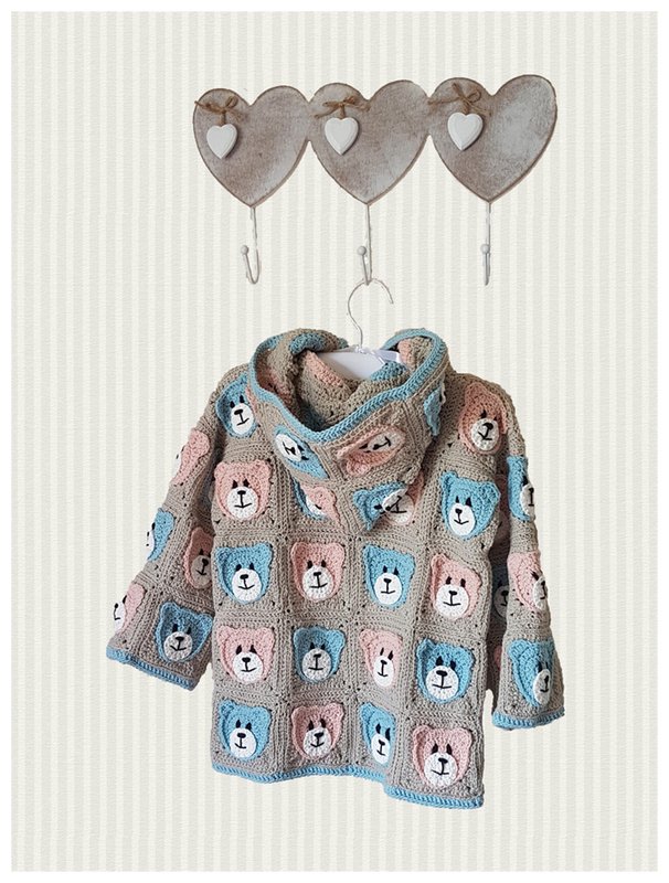 This adorable Teddy Bears Picnic crochet Jacket for 2 to 4 year old is a lot easier to make than what it appears