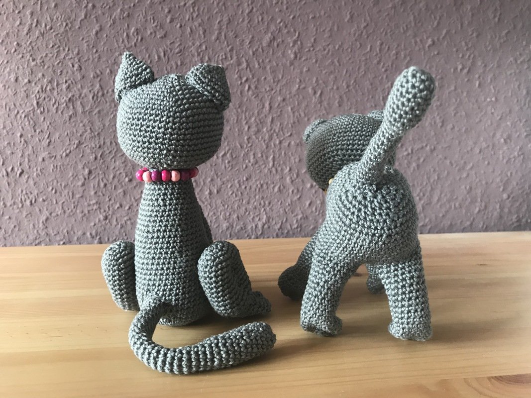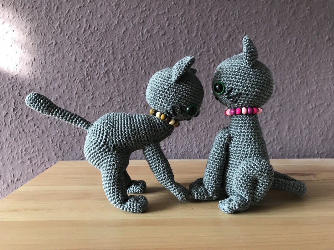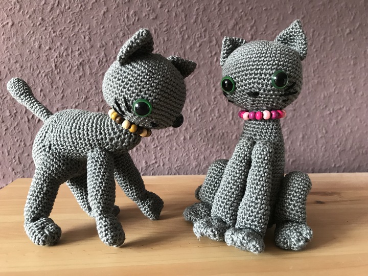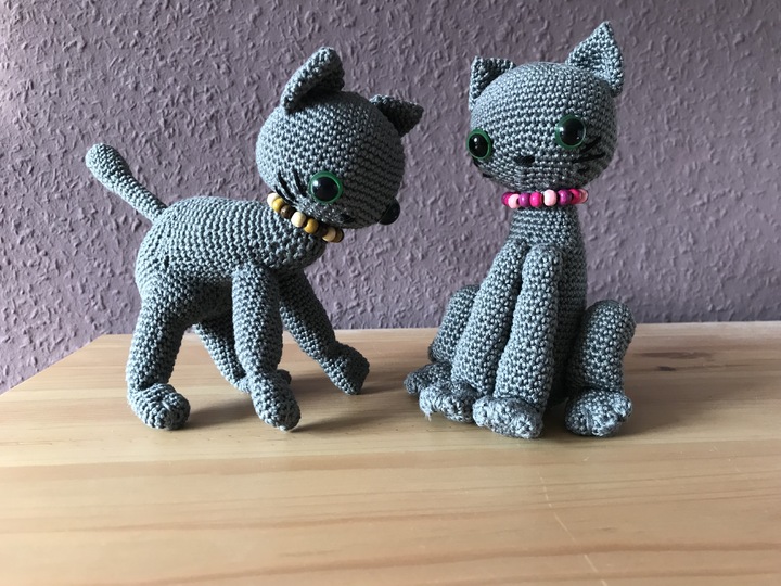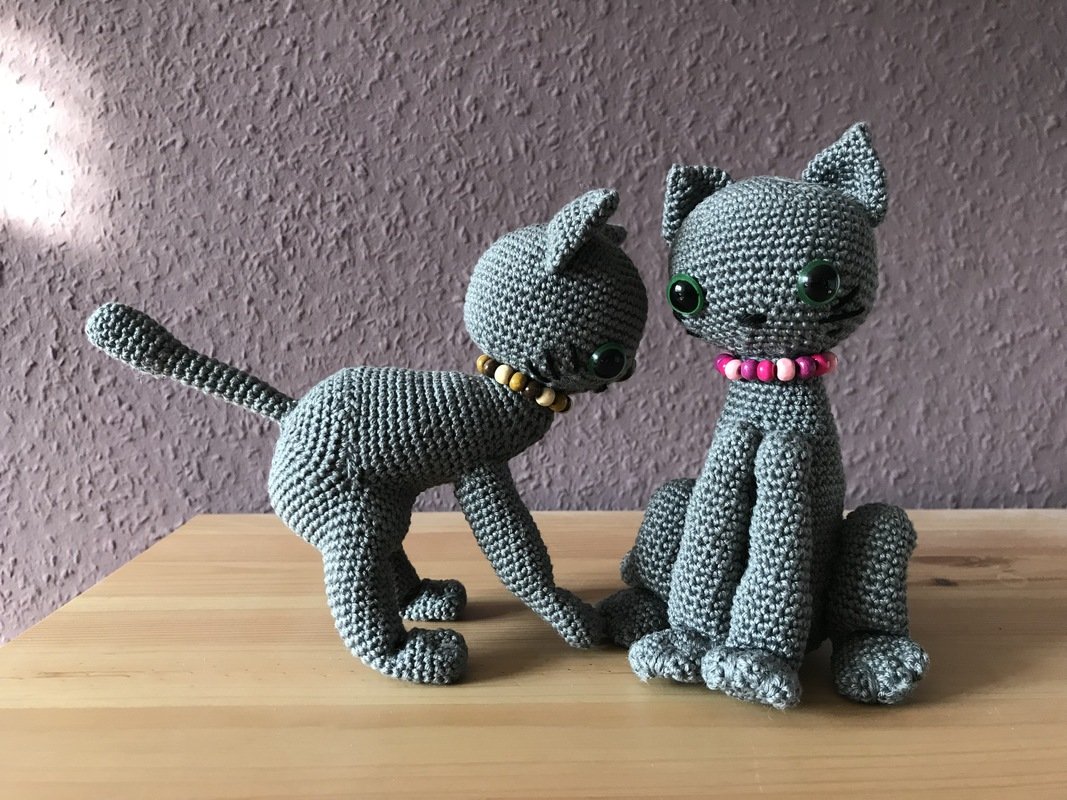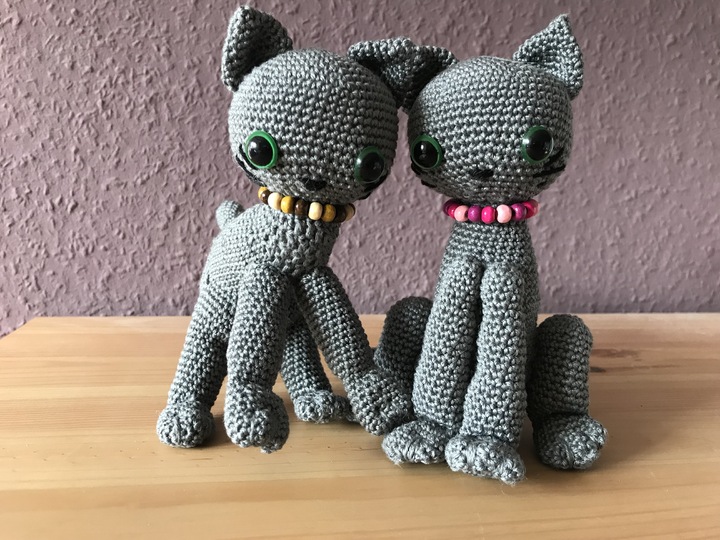 Damit werden. die beiden 15 bzw 13 cm groß. Du kannst natürlich auch das etwas dickere Baumwollgarn benutzen. Dann werden sie eben größer. Passe dazu bitte Garnmenge, Häkelnadel, Augengröße und evt. die Perlengröße an.