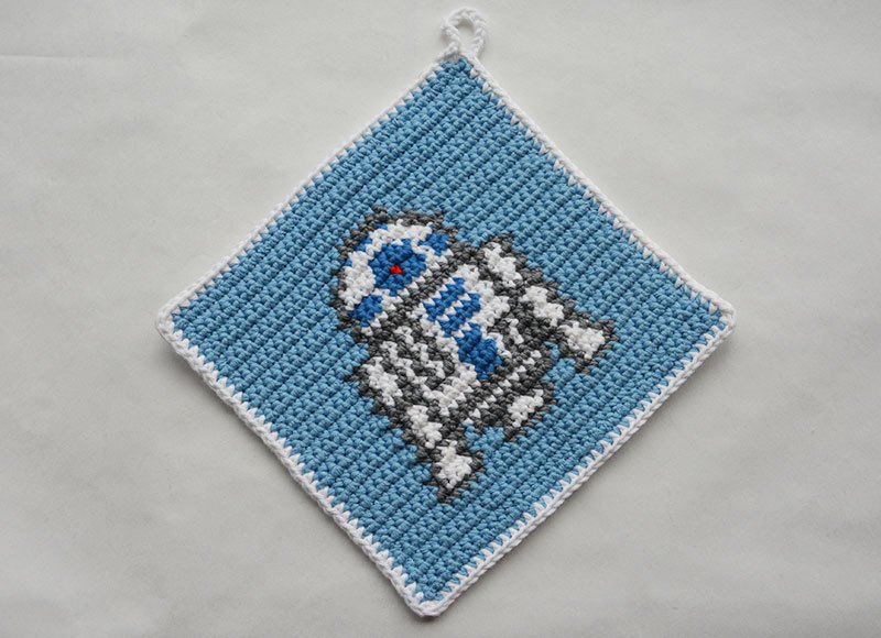 Make you own R2D2 potholder. It also makes a perfect housewarming-gift, x-mas or birthday-present.