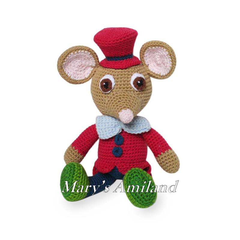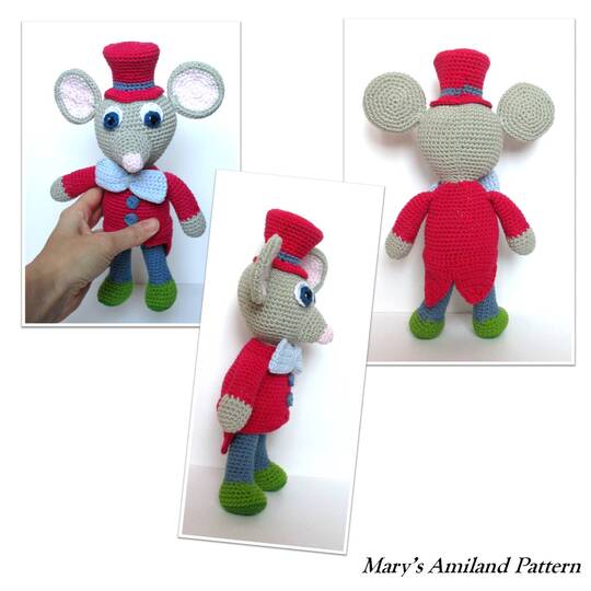 Finished Size: if done with cotton fingering-weight yarn (4 ply) in the selected colours for all items, 3mm hook, it is 22cm (8.58”) tall in standing position w/o ears and w/o top hat. This may vary depending on the yarn and hook size you decide to use.