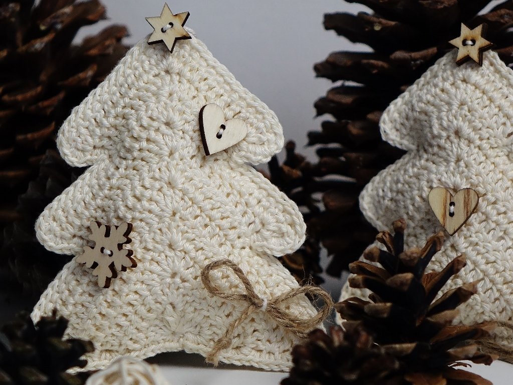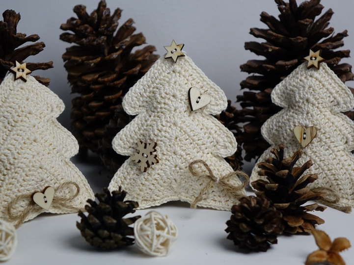 This crocheted Christmas tree will be a wonderful Christmas decoration that you can give to your friends or family, or you can make it for your home or apartment as a decoration in the Advent Time. You can crochet them in different colors and decorate them in any style. You can hang it or put it on a wooden stand. They will excel on a windowsill or on a Christmas tree.