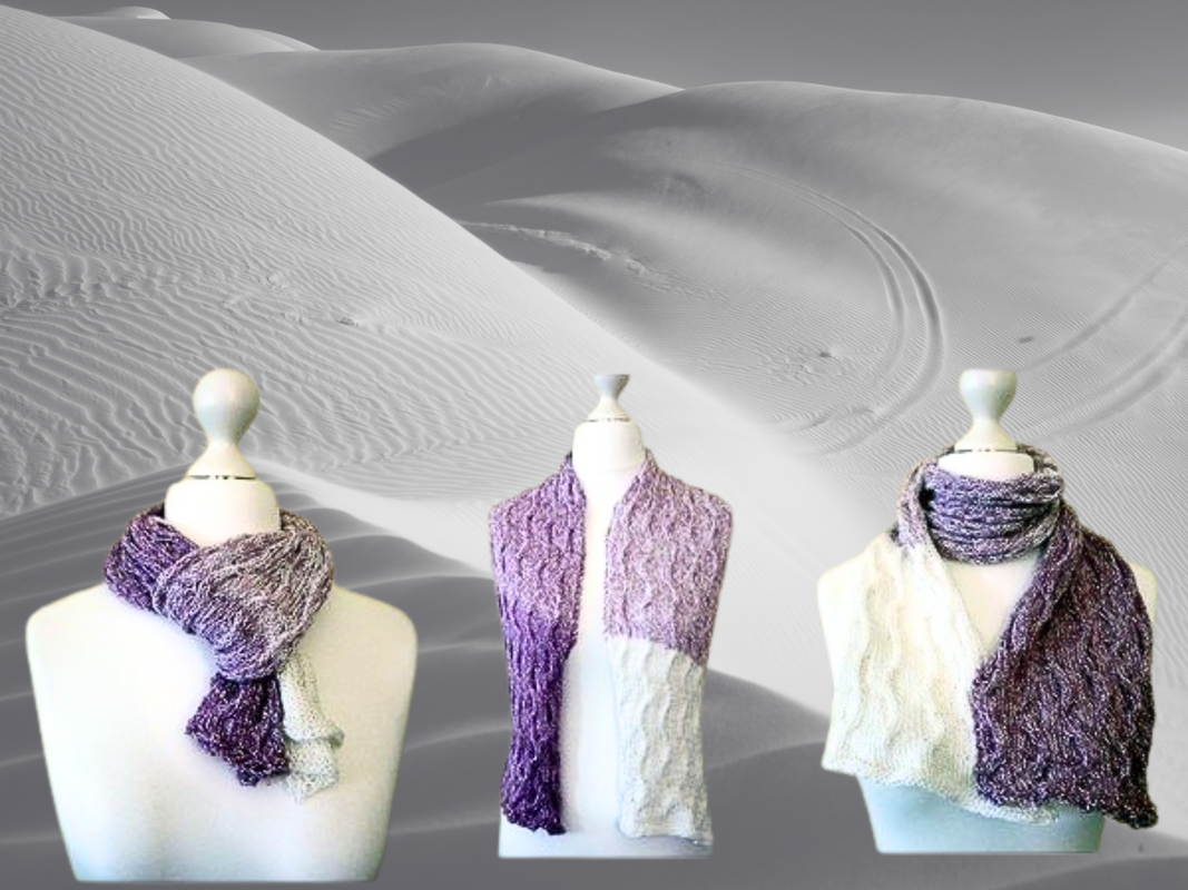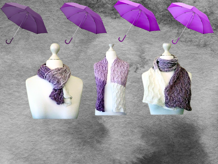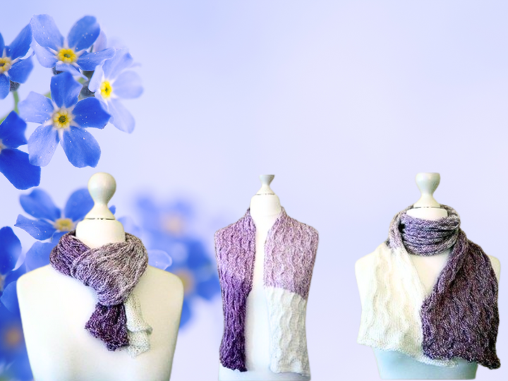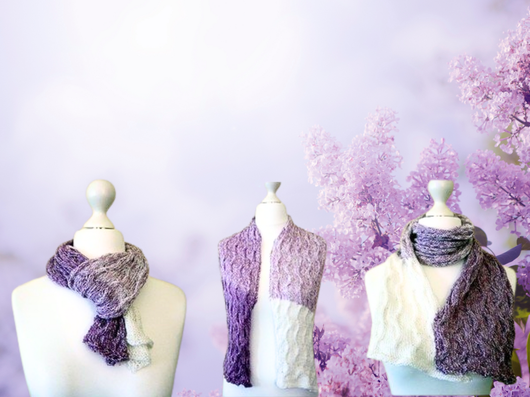 The buttoned cable scarf is approx. 70 cm long and approx. 25 cm wide, while the longer version without buttons is approx. 22 cm wide and approx. 132 cm long.