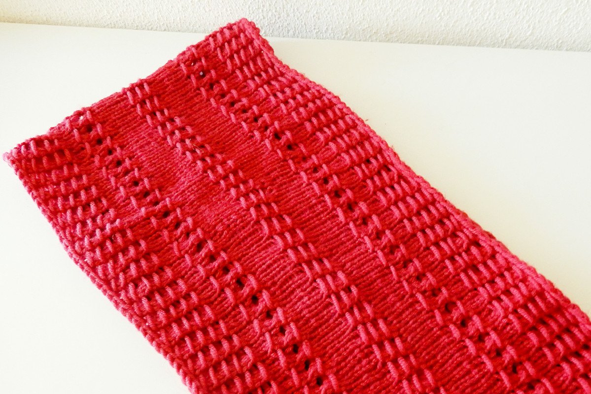 Difficulty level: advanced beginners (bamboo stitch, eyelets)