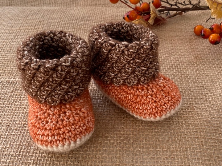 Difficulty Level: suitable for skilled beginners – this pattern contains detailed descriptions of each step, accompanied by numerous pictures and additional crochet charts for the sole and cuff