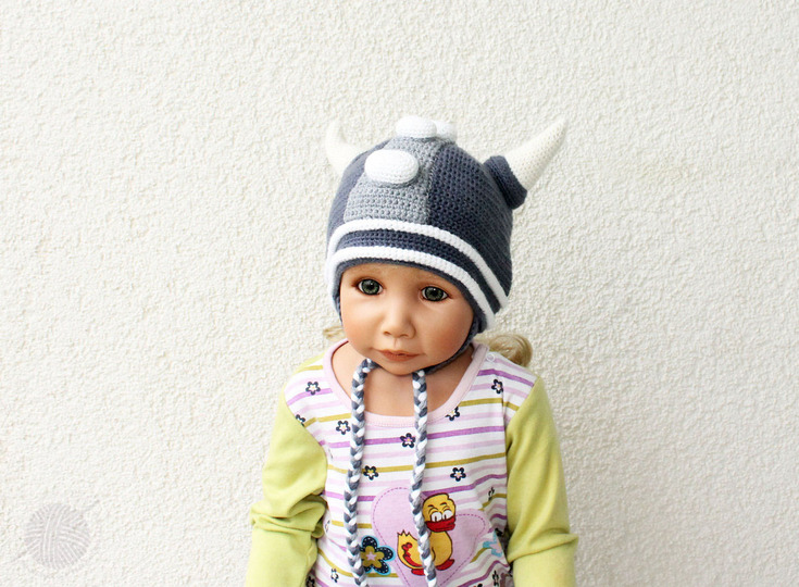 This PDF crochet tutorial consists of illustrated tutorial for crocheting a hat in the shape of a Viking helmet with the decorative pieces. The hat can be crocheted for both children and adults. The size is adjusted while crocheting the bottom of the hat (explained in the instructions).