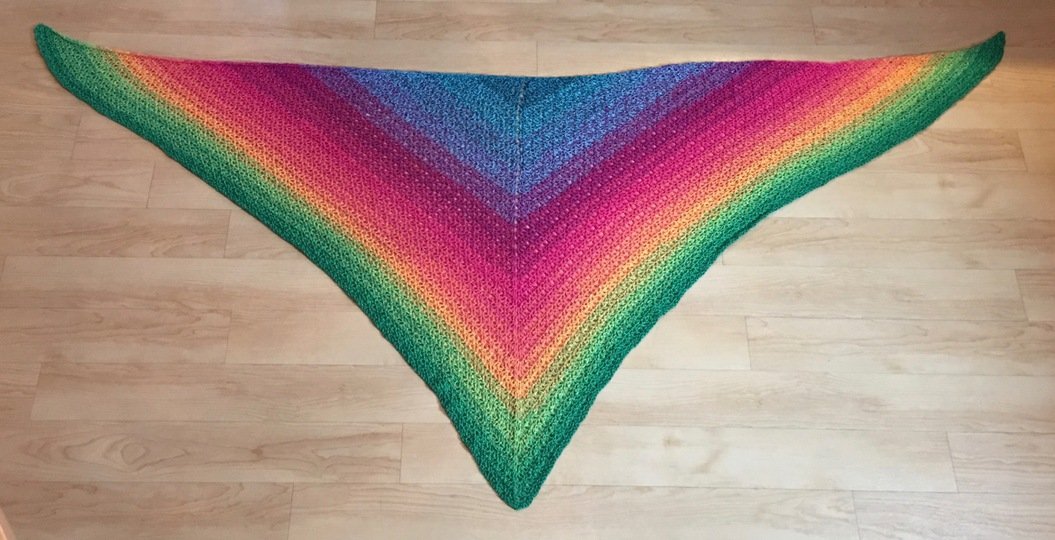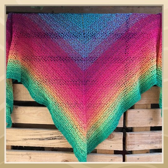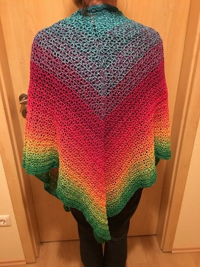 Dieses Tuch wurde mit dem Bobbel „Konfetti“ aus der Bobbel-Scheune gearbeitet. LL = 950m, 250 Gramm, 4-fädig