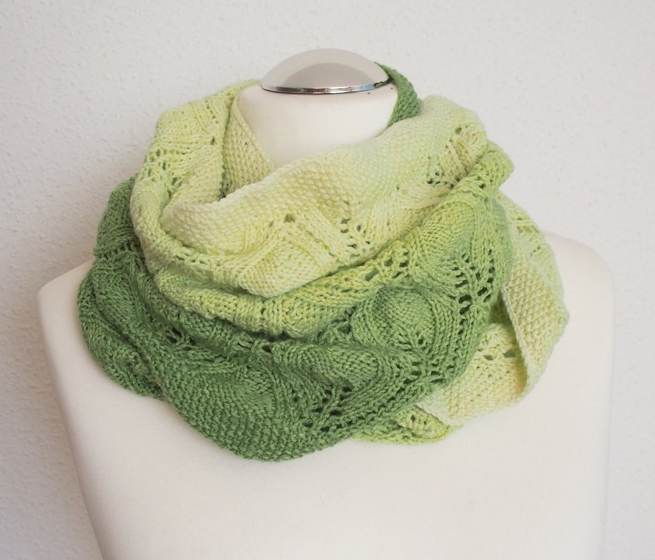 This cowl has a full reversible both-sided pattern and is a real eyecatcher. No matter which way you wear it, it shows always the most beautiful side.