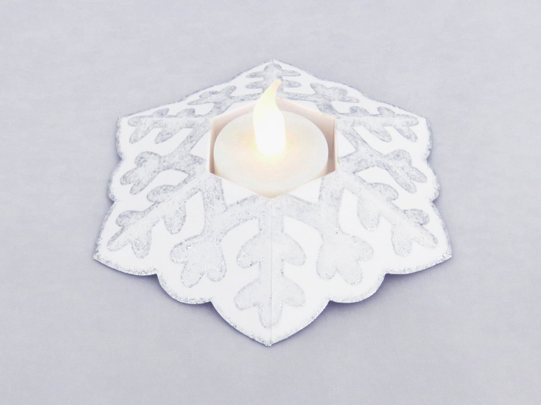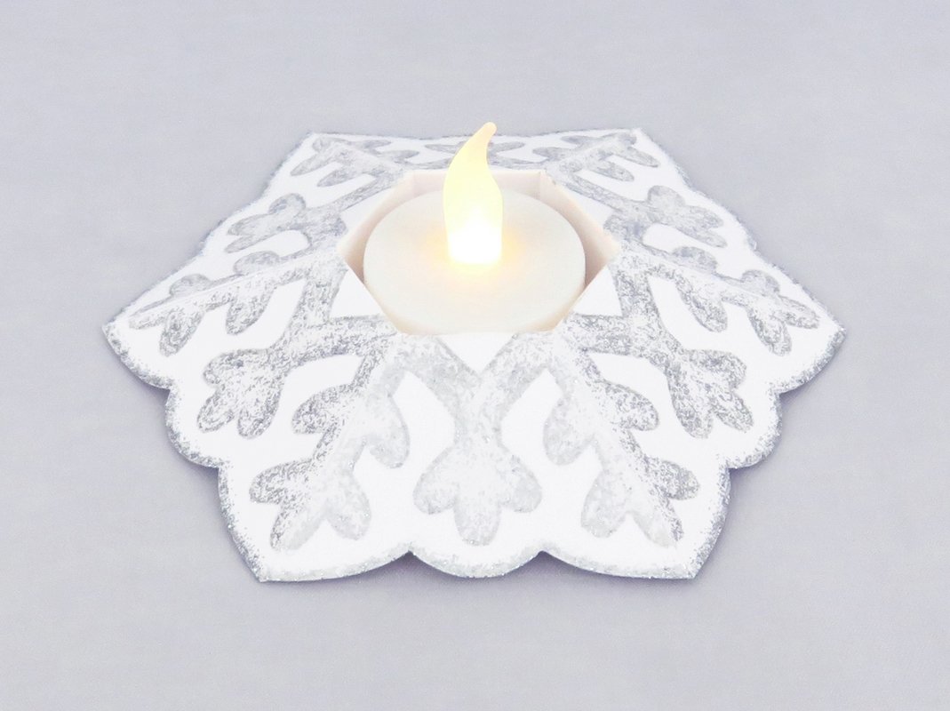 Mit diesem Teelichthalter hast du eine hübsche winterliche Dekoration, mit der du auch in deinem warmen Zuhause nicht auf die Schönheit der Schneekristalle verzichten musst.