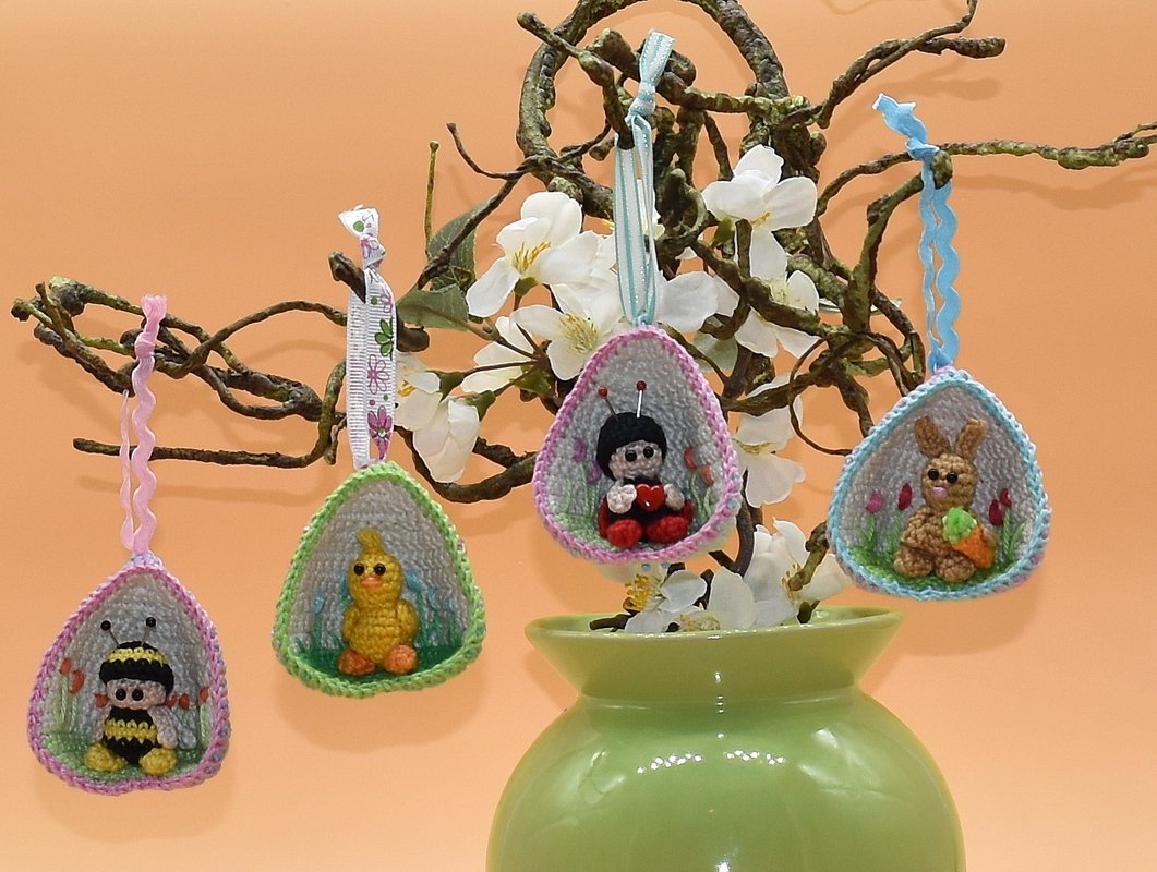 Damit du dich nicht zwischen den Hasen, das Küken, den Marienkäfer oder die Biene die im Ei sitzt, entscheiden musst, bekommst du alle 4 Figuren in einer Anleitung.