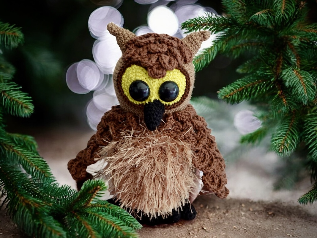 Tawny Owl - Your Little Friend from the Forest! Step into the magical world of the woods and crochet your very own little tawny owl – perfect as a decoration, gift, or cuddly companion. With its classic round shape, big googly eyes, and adorable details like wings, a beak, and tiny claws, this little owl is sure to win your heart.