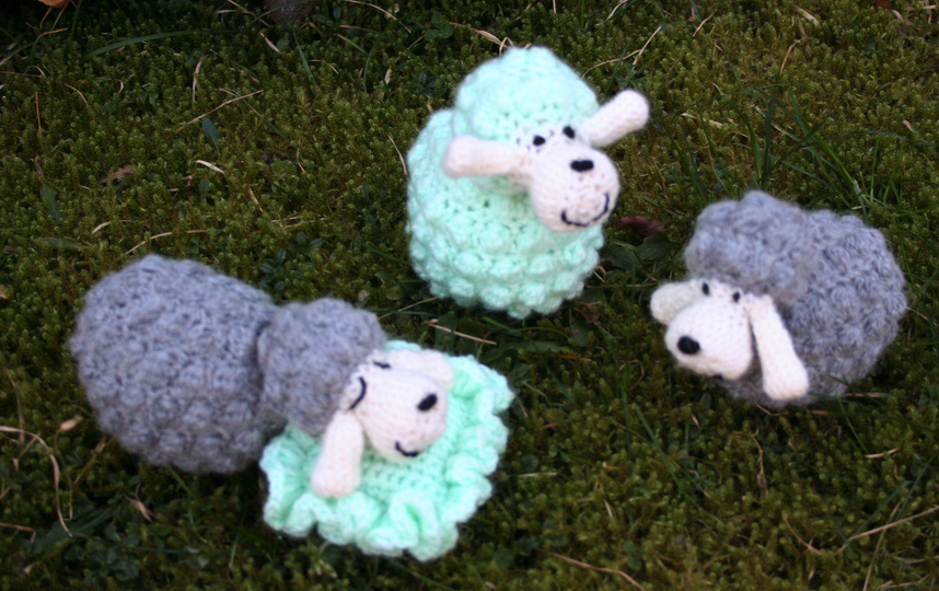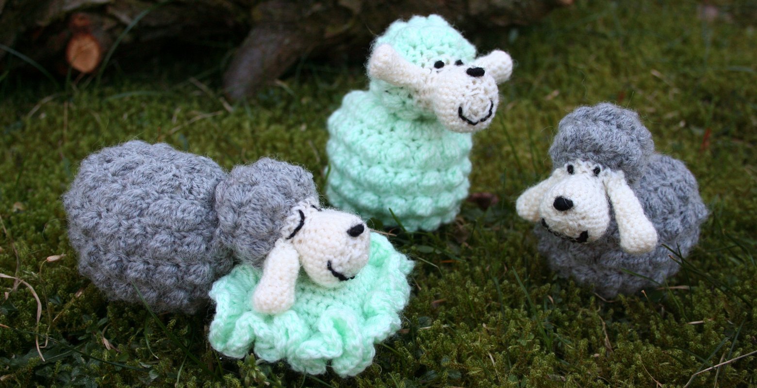 Diese kleinen Schäfchen haben Sie schnell gehäkelt. Durch die Bobbelmaschen wirken sie schön knuffig.