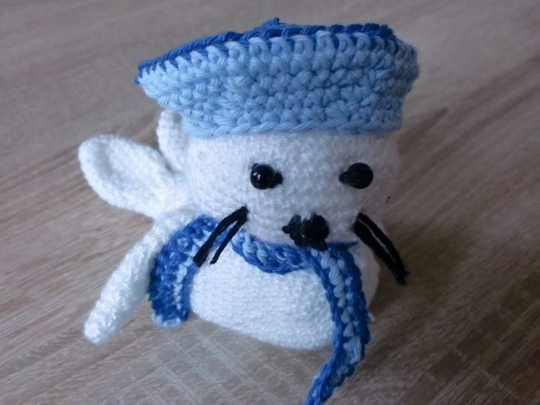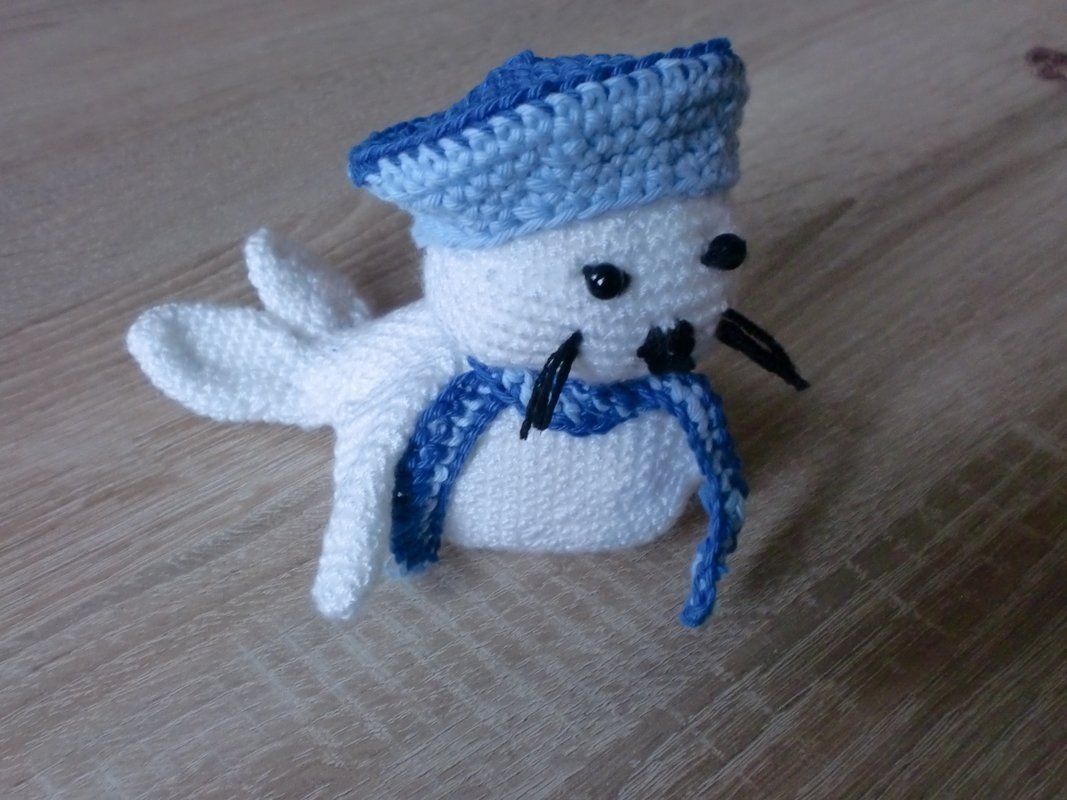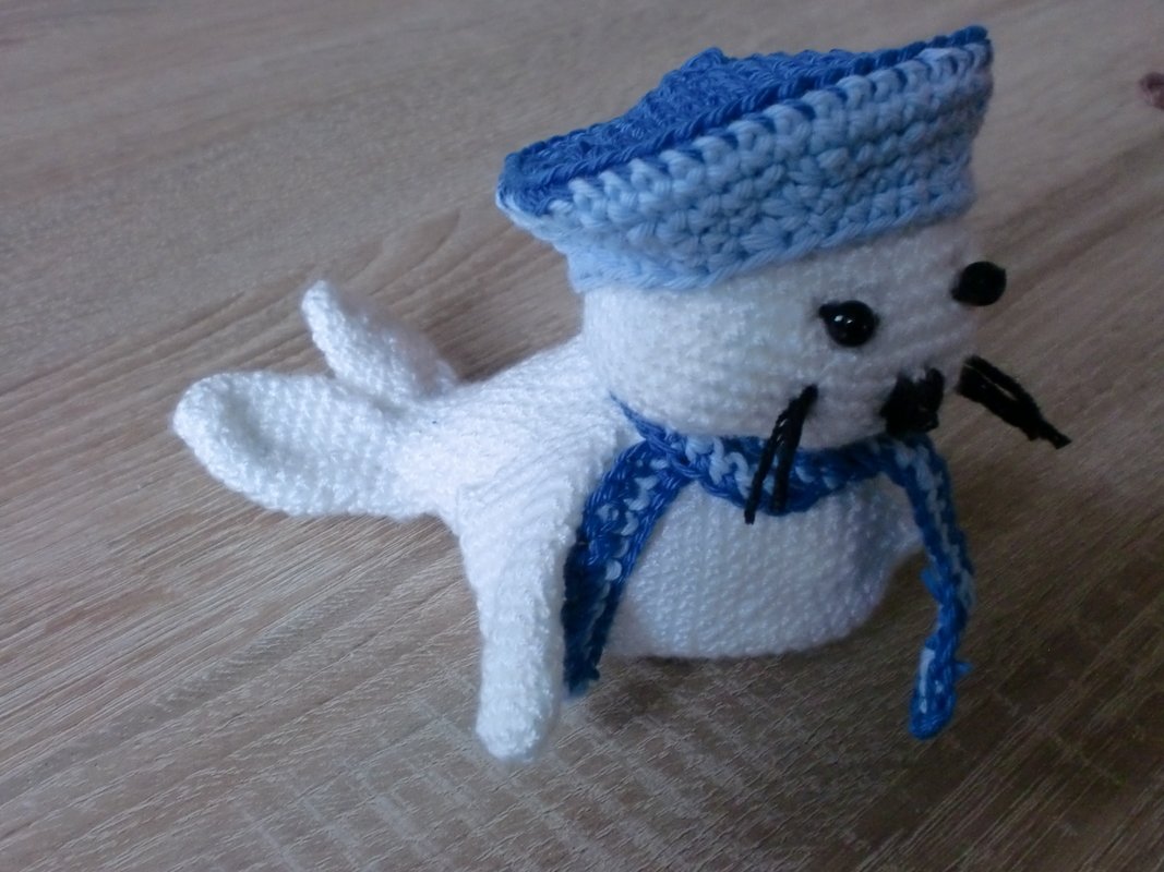 Ich habe noch eine kleine maritime Deko benötigt und dachte,ich versuche es mal mit dieser kleinen Robbe und so ist das Tierchen entstanden.Die kleine Robbe misst ca. 20 x 15 cm . Die Anleitung ist für Anfänger geeignet.