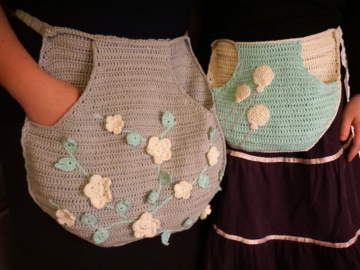 Abmessungen: ca. 37x35 cm, bzw. 27x22 cm. Der kleinere Beutel ist von der Grösse her ideal für Kinder zwischen 4 und 9 Jahren.