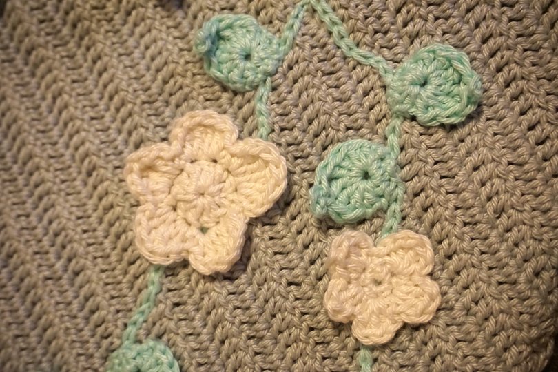 Extra: Es wird dir erklärt, wie du mit Kettmaschen auf einem Häkelstück sticken kannst.