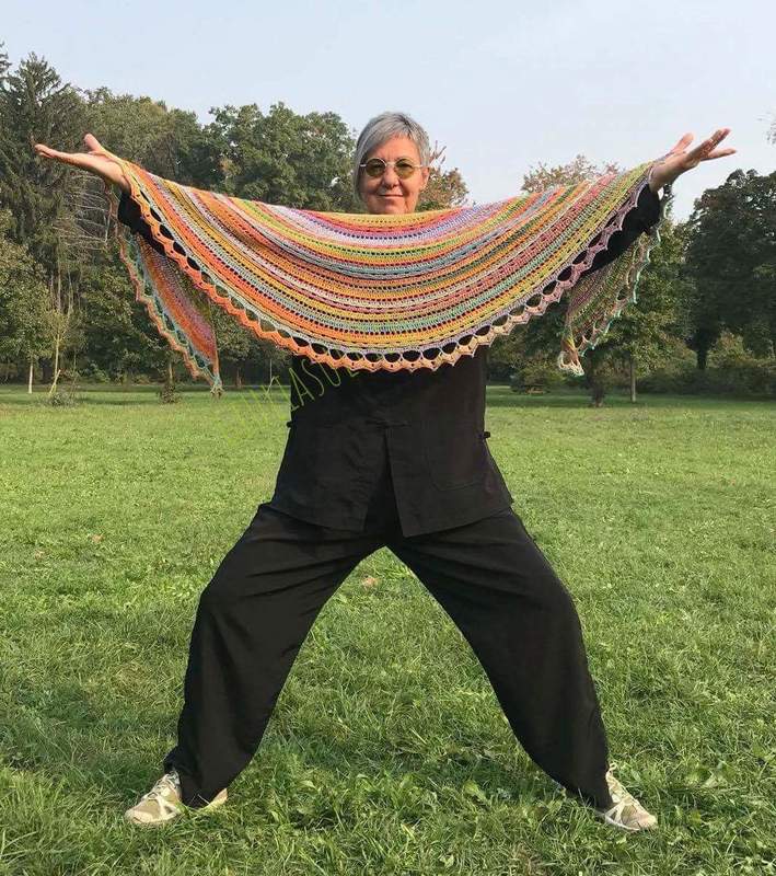 Shawl with a semicircular shape, modular, which allows to increase or decrease the size according to the needs.