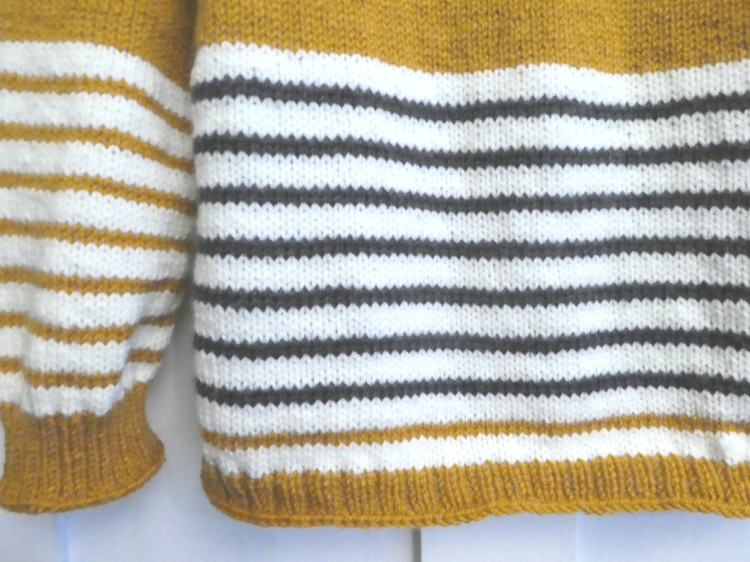Added stripes make for an interesting pattern and you will not get bored knitting.