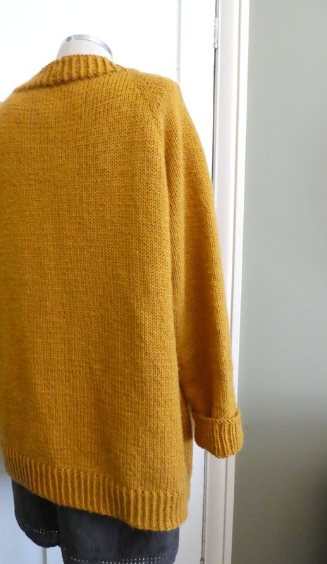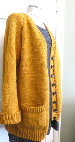 Oversized boyfriend cardigan, worked in Aran weight yarn.