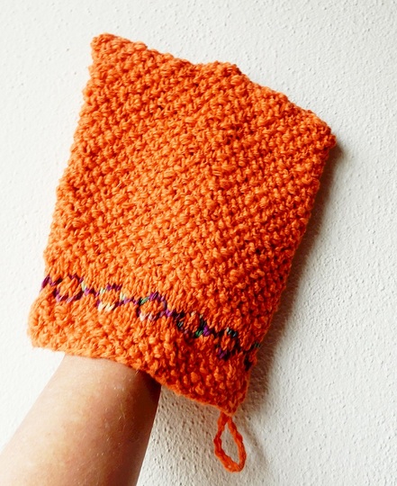 A circle of mushrooms is called a fairy ring. A ring worked in stranded colorwork makes this washcloth a fairy washcloth. Of course only if you believe in fairies.