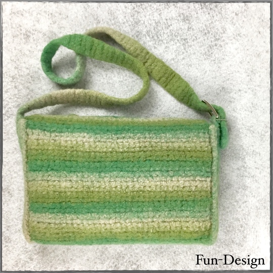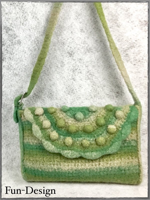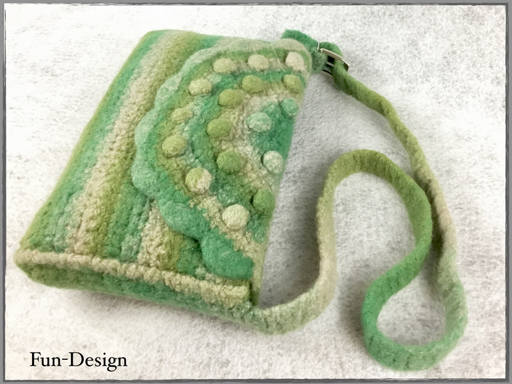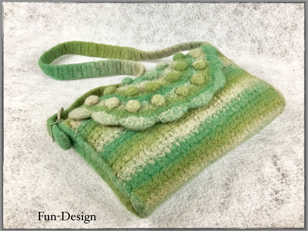 Diese ungewöhnliche Filztasche wird zuerst gehäkelt und dann in der Waschmaschine gefilzt.