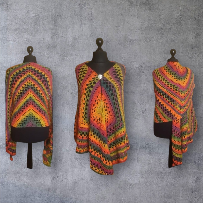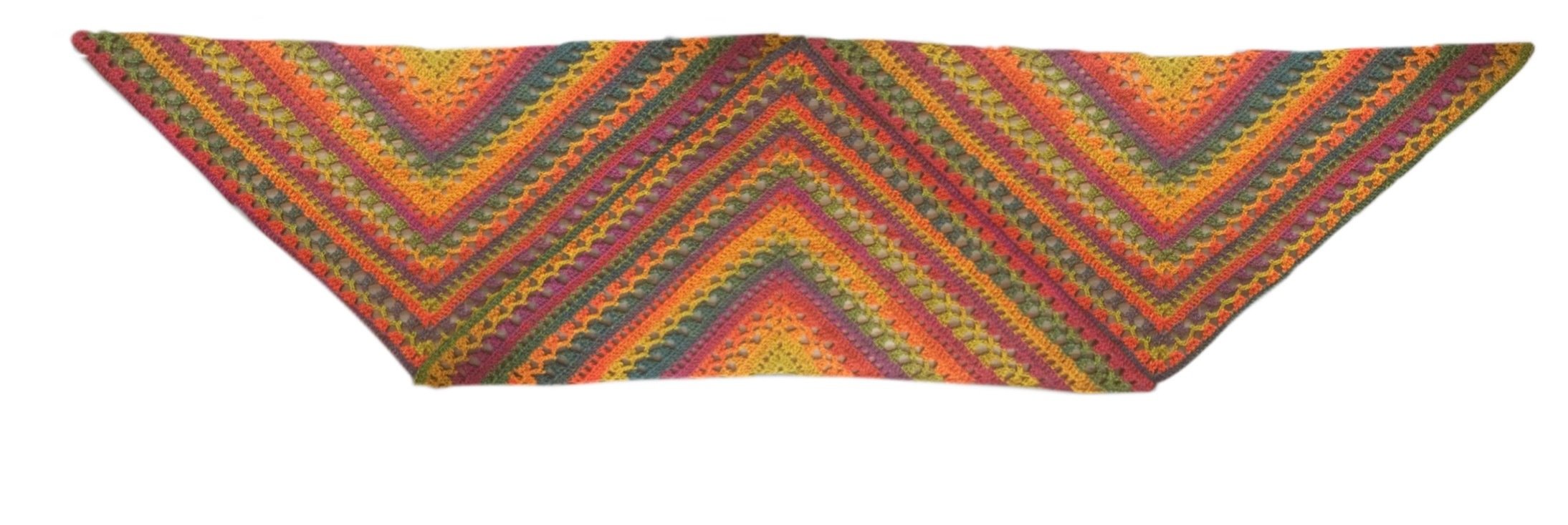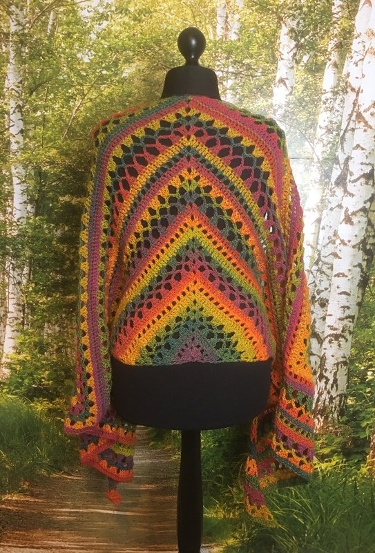 With this pattern, you can crochet a simple but yet beautiful triangle shawl, or you crochet 3 triangles to make a stole, or 8 triangles to make a blanket.