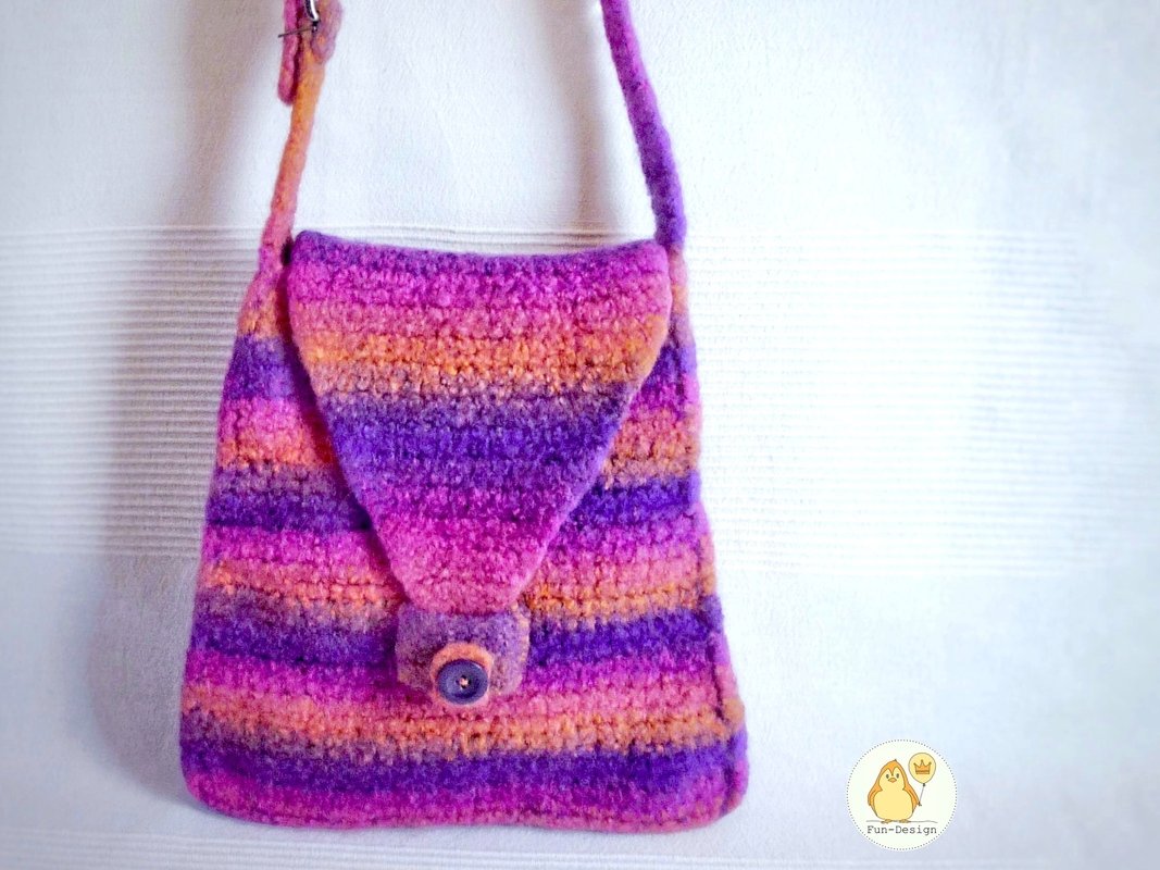Diese ungewöhnliche Filztasche wird zuerst gehäkelt und dann in der Waschmaschine gefilzt.