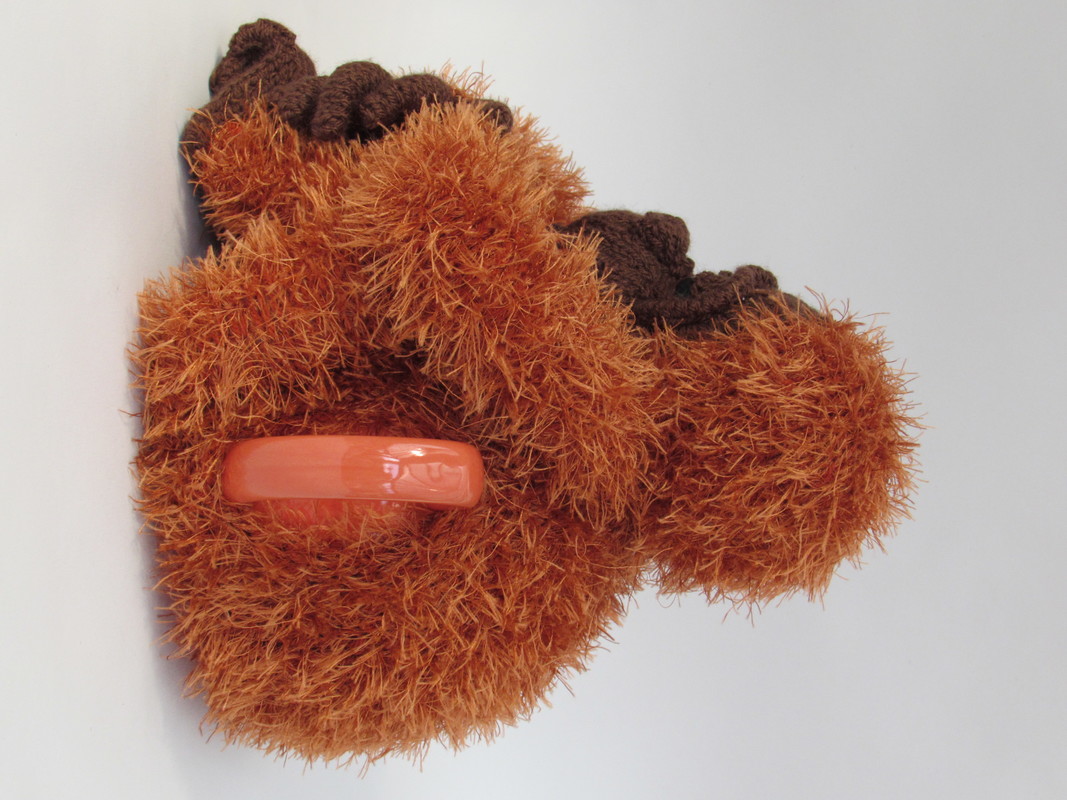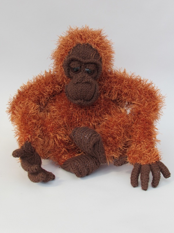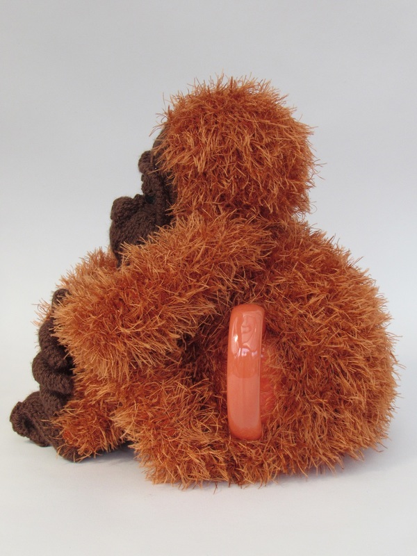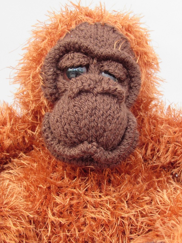 Her lovely fluffy coat is provided by King Cole Moments DK yarn, the ginger shade is perfect for an orangutan.