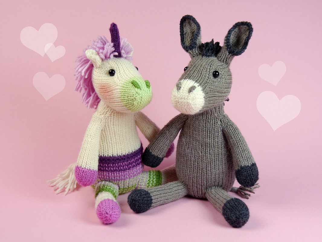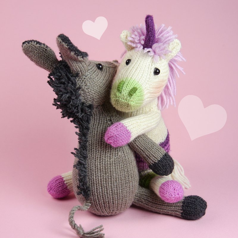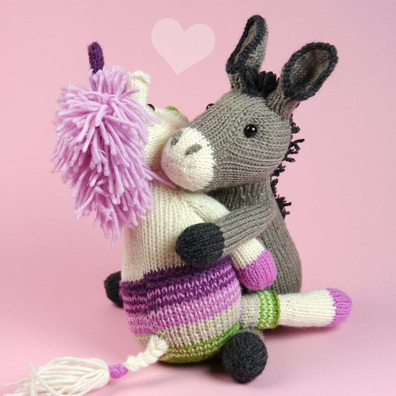 Rudi the Unicorn Girl and Rocky the Donkey are sooooo in love! Everyday, Rocky brings her a flower, in pink, of course, and she feeels so secure when he wraps his arms around her. They are inseparable, so I'm sorry to tell you that you have to make them both :-)