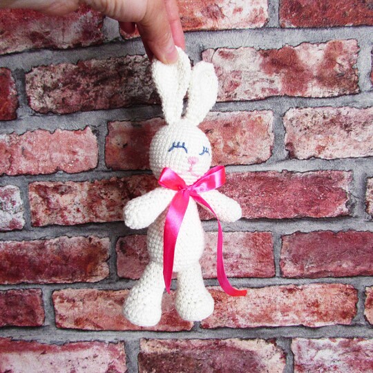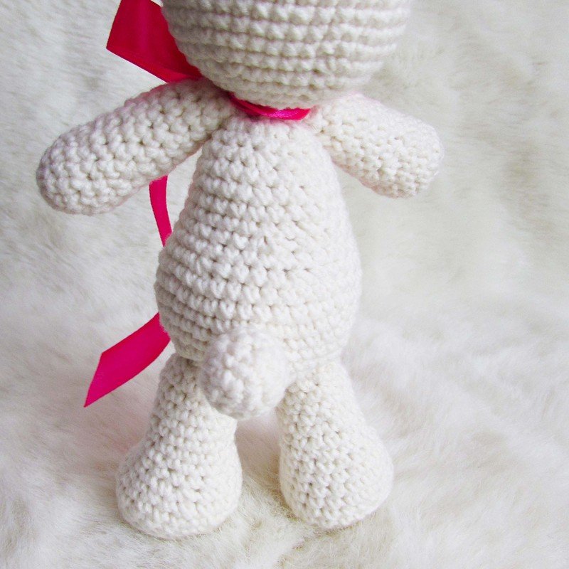 Finished Measurements: approx. 23 cm / 9 " tall ( including ears). You can made larger/smaller with different hook and thread sizes.