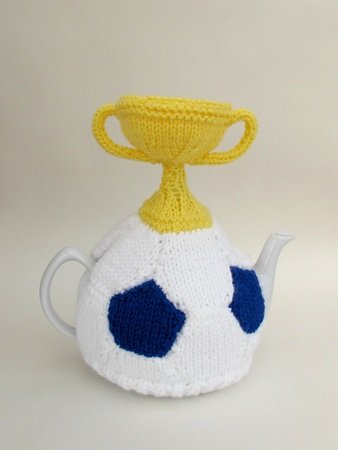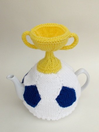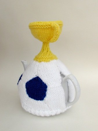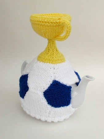 The Football and World Cup Trophy Tea Cosy is a knitting pattern to make a tea cosy that looks like a football, perfect for that football fanatic in your life. The football part of the cosy is made just like a real football, only it's knitted.