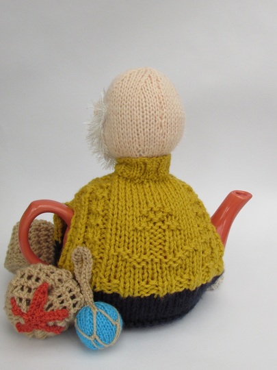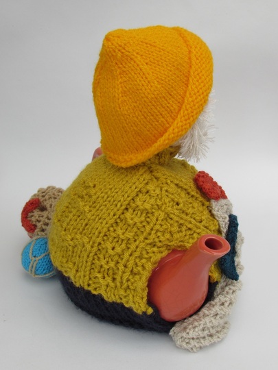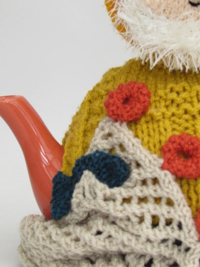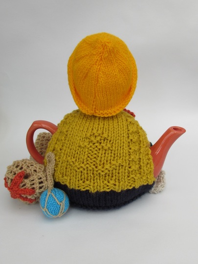 The tea cosy is knitted with double thickness yarn to keep the teapot and the tea really hot.