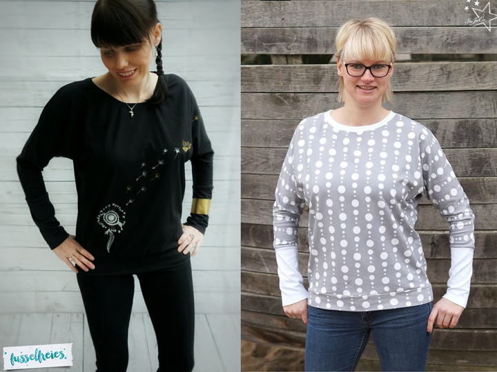 Nähanleitung und Schnitt für ein Fledermausshirt in den Größen 34-52