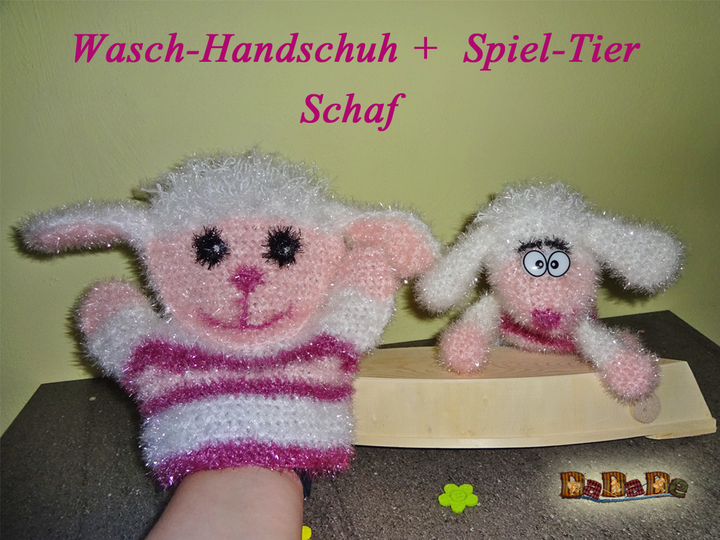 Der Waschhandschuh Schaf wird ungefähr; 21cm lang x 26cm breit, mit Ohren