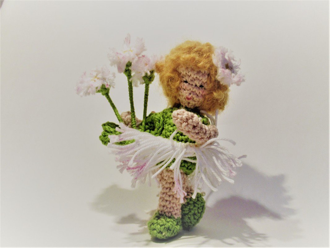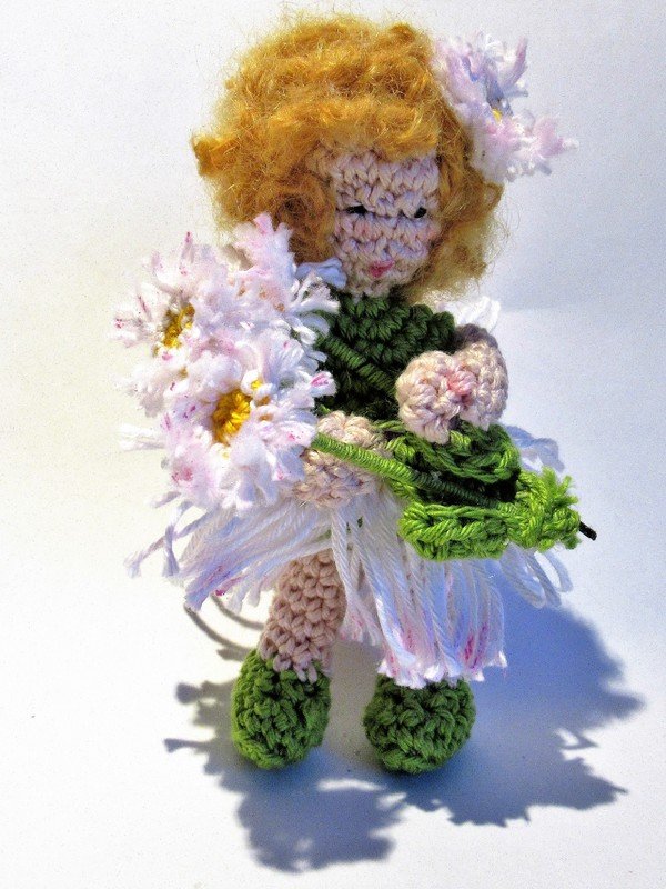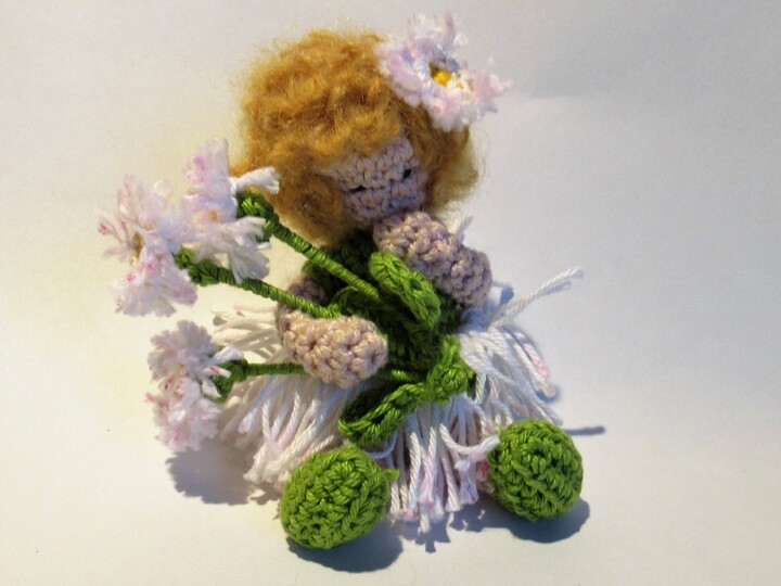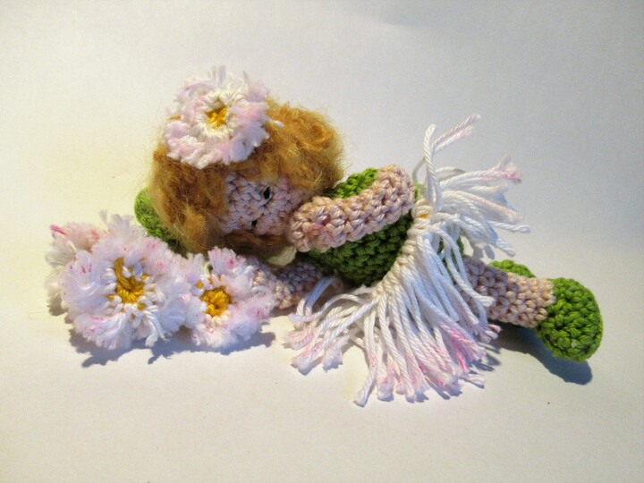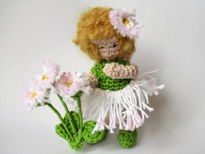 Jetzt kannst du dir das Blumenkind "Gänseblümchen" häkeln. Es wird etwa 13 cm hoch und hat bewegliche Arme und Beine, so dass du es in beliebiger Position dekorieren kannst. Es ist eine hübsche Frühlingsdekoration für den Jahreszeitentisch. Aber auch auf dem Frühstückstisch macht es eine gute Figur.