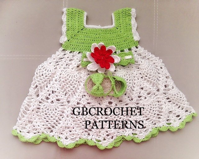 NOT THE FINISHED ITEM. This baby crochet pattern includes the flower crochet pattern as shown in the pictures to be attached later to the dress, hats and shoes. This crochet baby dress pattern includes the patterns for