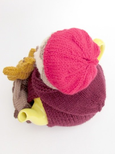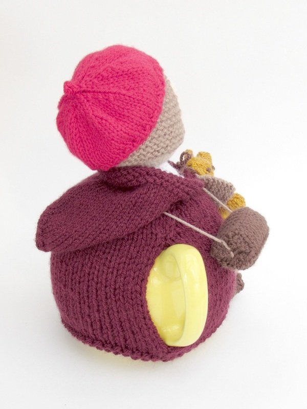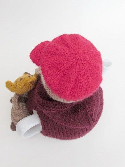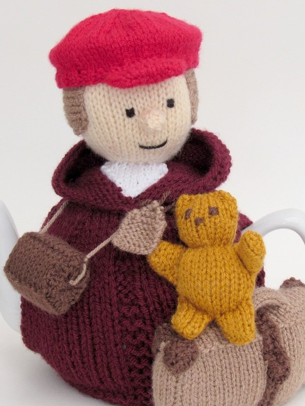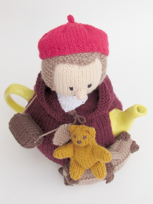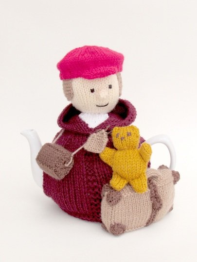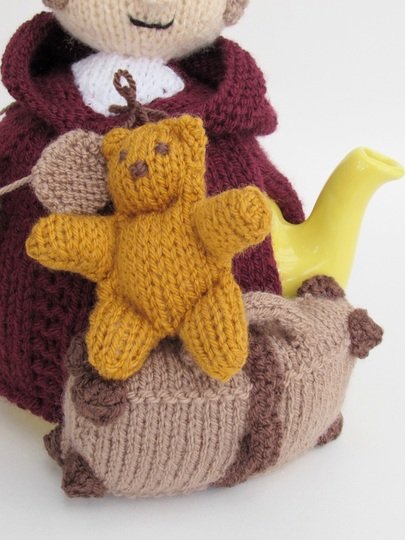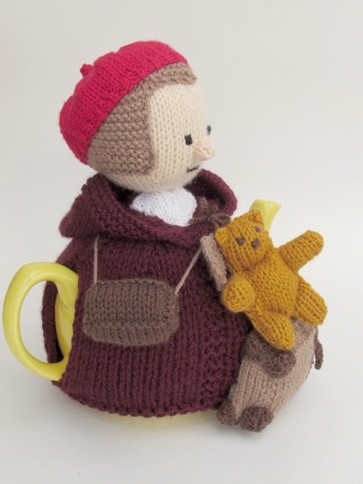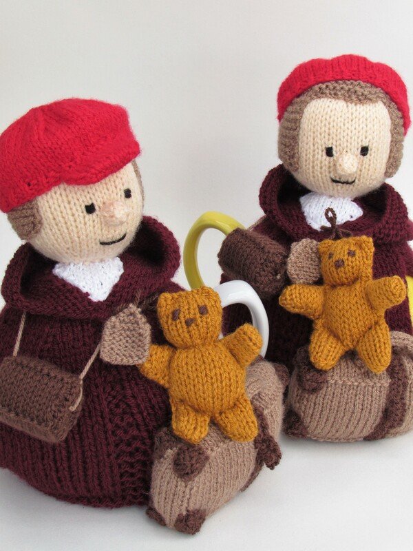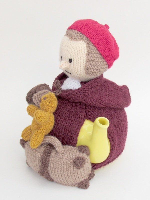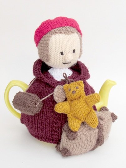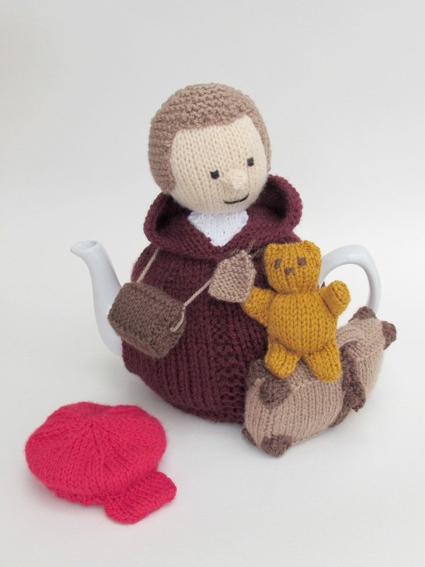 This tea cosy can be knitted to make a girl or a boy evacuee, the pattern includes the both hat style which determines the child's genda. The hats are removable for a bit of fun.