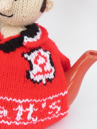 The Nottingham Forest football supporter was first designed as a bespoke tea cosy design, but has been re-designed so that he can be knitted to be anyone's brother, hubby, nephew or any male Nottingham Forest football supporter.
