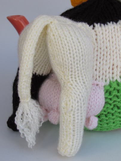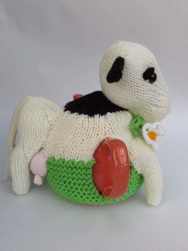 This product is the knitting pattern only to make your own Friesian Cow tea cosy.